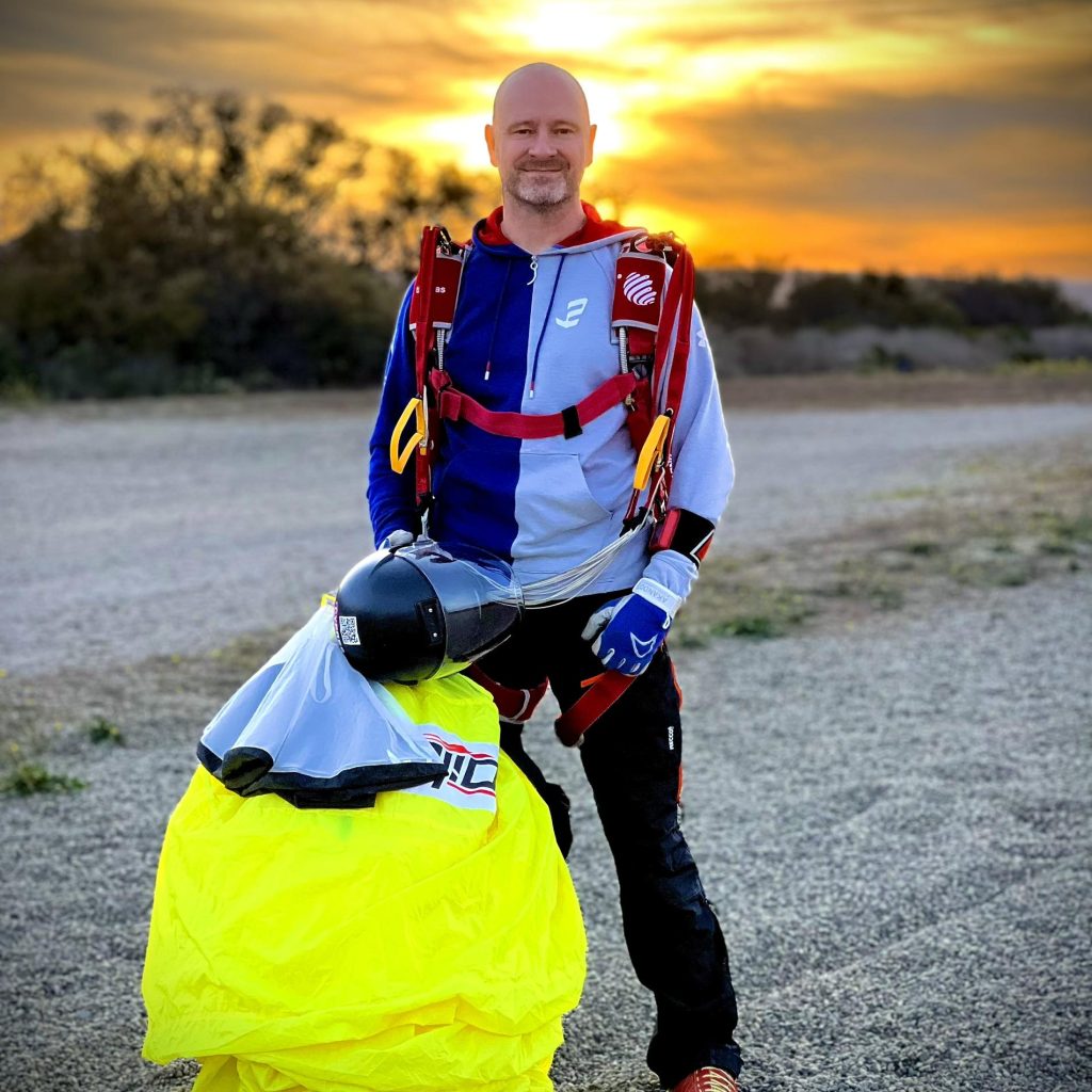 Wywołanie tej autoterapii jest dla mnie bardzo ważne, dlatego musimy na chwilę wrócić do czasów, kiedy miałem 6 lat. To był ten moment, o którym już mówiliśmy – gdy zobaczyłem spadochroniarza i ratownika. To były dwa moje ukryte marzenia, z którymi dorastałem przez wszystkie te lata. Długie lata. Pierwszy raz skoczyłem dopiero mając 37 lat. Potem był drugi skok, trzeci – i tak doszedłem do sześciu. A potem pomyślałem – czemu nie dwanaście? To będzie taki mój szczyt.
